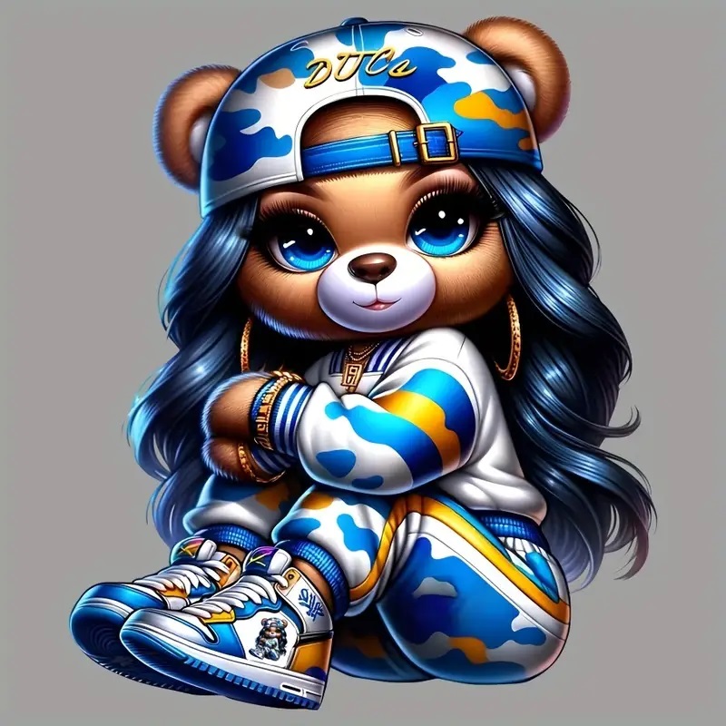 ** Heat-Transfer van Graffiti beer meisje. Afmeting 22×18.6 cm. Snel, eenvoudig en makkelijk te gebruiken. Kan op allerlei stoffen producten gebruikt worden. Dit artikel nemen wij na bestelling niet retour.