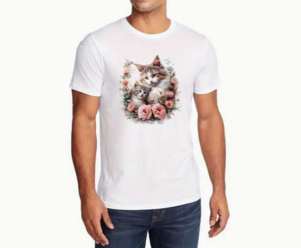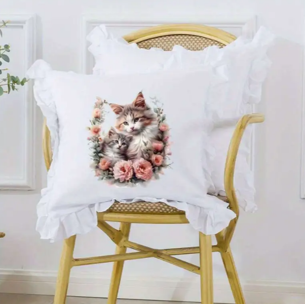 ** Heat-Transfer van Mama en dochter kat tussen bloemen. Afmeting 22×19,8 cm. Snel, eenvoudig en makkelijk te gebruiken. Kan op allerlei stoffen producten gebruikt worden. Dit artikel nemen wij na bestelling niet retour.