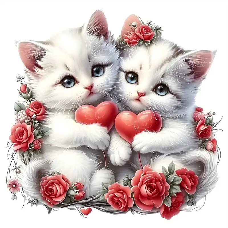 ** Heat-Transfer van Twee witte katjes met rood hartje. Afmeting 8.8×8.53 cm. Snel, eenvoudig en makkelijk te gebruiken. Kan op allerlei stoffen producten gebruikt worden. Dit artikel nemen wij na bestelling niet retour.