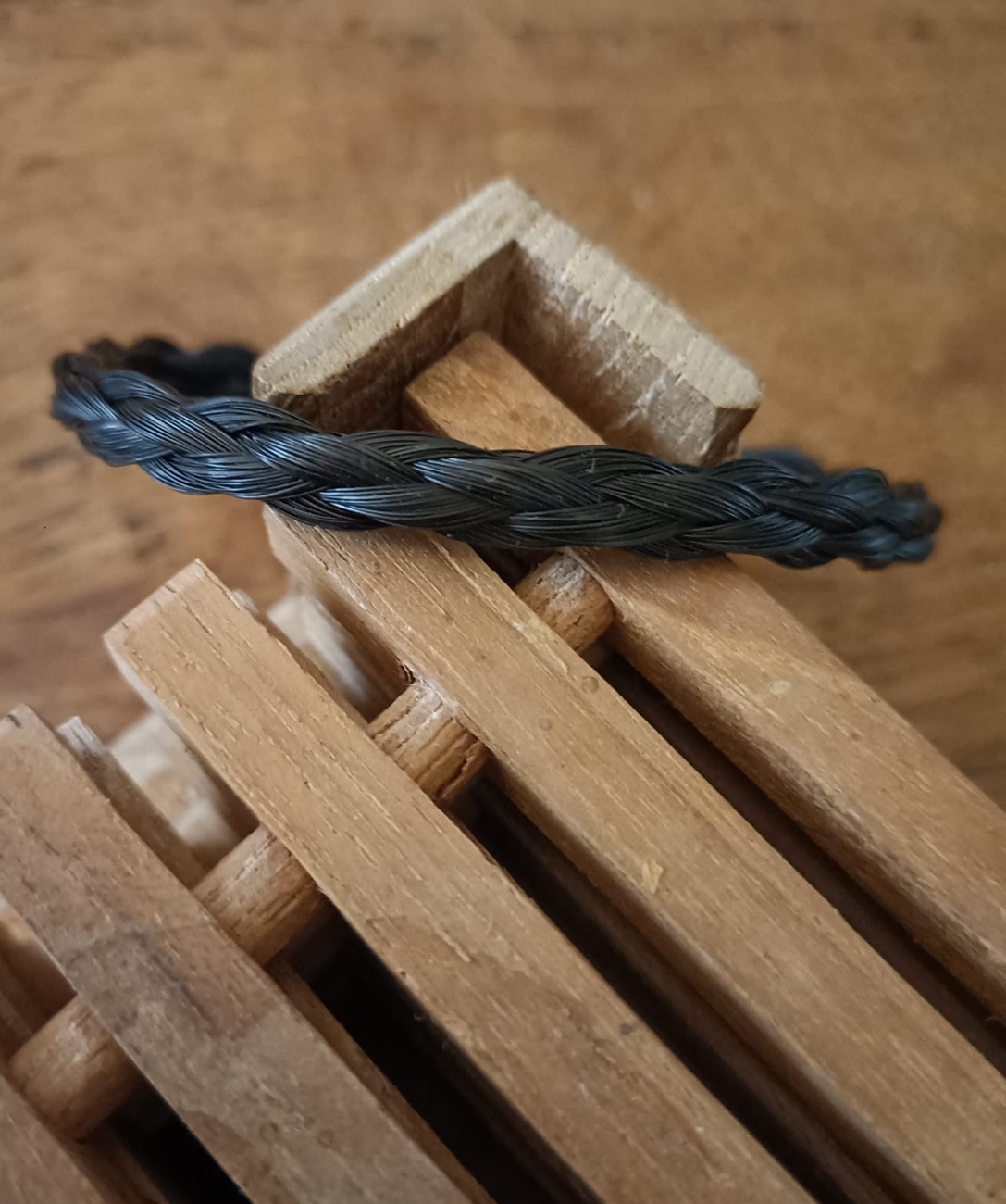** De armband is gemaakt van zwart echt paardenhaar