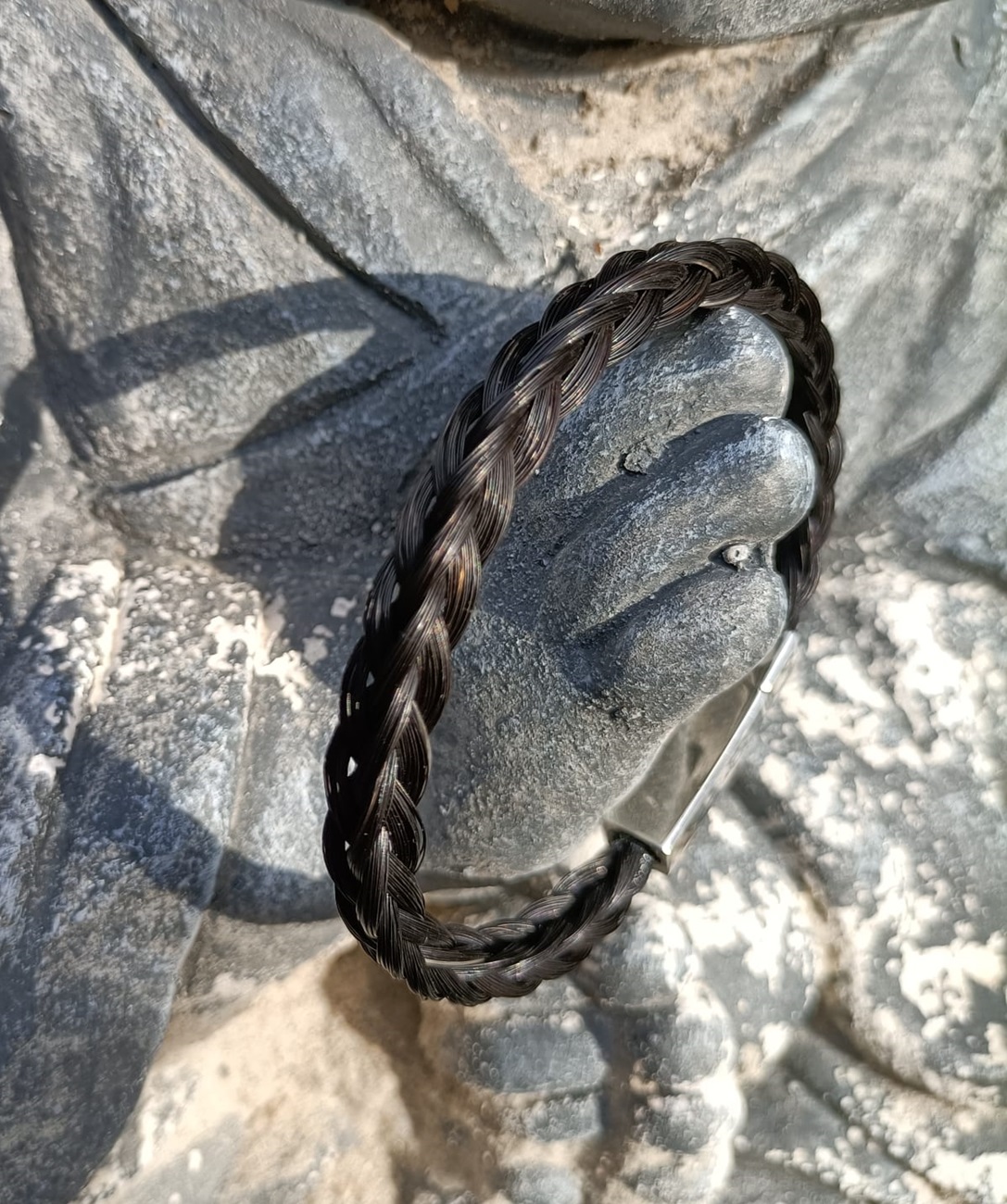 ** De armband is gemaakt van zwart echt paardenhaar