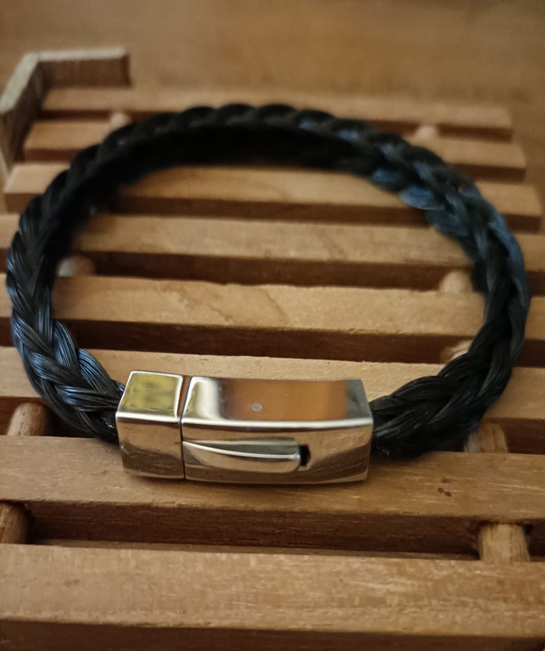 ** Armband vierkant gevlochten van echt paardenhaar